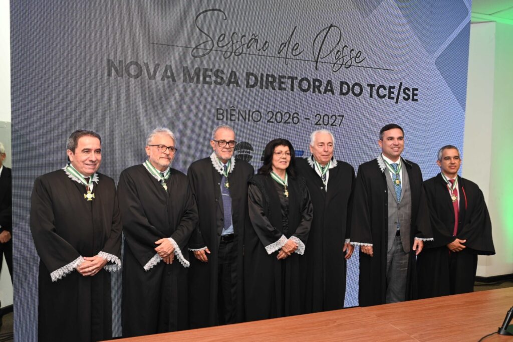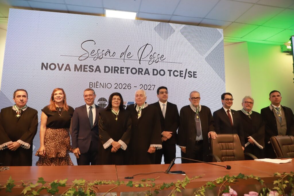 Aconteceu na tarde de ontem, 11 de dezembro, a sessão solene de posse da nova mesa diretora do Tribunal de Contas do Estado de Sergipe (TCE-SE). Na cerimônia, assumiram suas funções a Conselheira Maria Angélica Guimarães Marinho como Presidente e os Conselheiros Luiz Augusto Carvalho Ribeiro como Vice-Presidente e José Carlos Felizola Soares Filho como Corregedor-Geral.