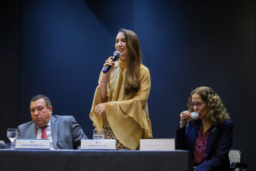 A Presidente da Audicon, Milene Cunha, iniciou sua fala destacando a alegria e a honra de realizar o evento no Rio de Janeiro. Em suas palavras, “nenhuma cidade representa tão bem o tema das mutações quanto o Rio de Janeiro — onde o céu muda de cor em minutos e a orla se redefine todos os dias”.