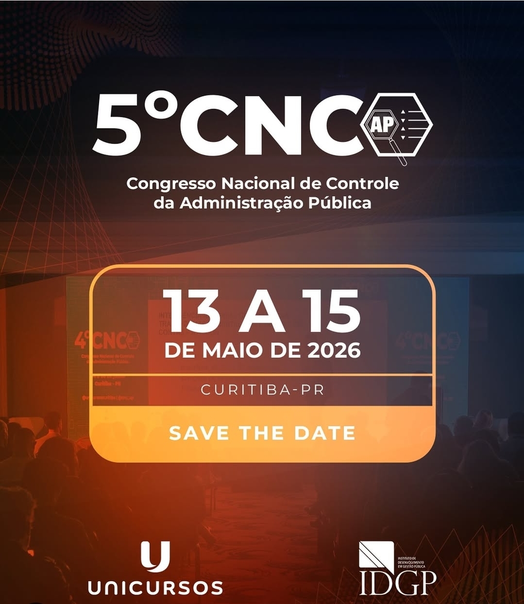 Nos dias 13 a 15 de maio de 2026, será realizado, em Curitiba, o 5º Congresso Nacional de Controle da Administração Pública (5º CNC), um dos mais relevantes eventos do país voltados ao fortalecimento do controle, da governança e da gestão pública. Promovido pela Unicursos Curitiba em parceria com o Instituto de Desenvolvimento em Gestão Pública (IDGP), com o apoio da Audicon, o encontro consolida-se como espaço estratégico de capacitação, troca de experiências e disseminação de boas práticas no setor público.
