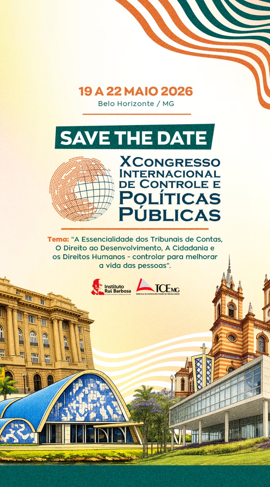 Nos dias 18 a 22 de maio de 2026, será realizado, em Belo Horizonte, o X Congresso Internacional de Controle e Políticas Públicas, promovido pelo Instituto Rui Barbosa em parceria com o Tribunal de Contas do Estado de Minas Gerais, com o apoio da Audicon. Consolidado como um dos mais relevantes eventos da área, o congresso reunirá especialistas nacionais e internacionais, autoridades públicas, acadêmicos e membros do sistema de controle para debater os rumos das políticas públicas e da governança estatal.