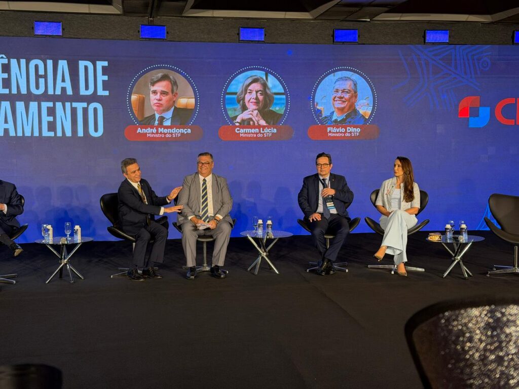 A Conferência de Encerramento contou com as palestras dos Ministros do Supremo Tribunal Federal Flávio Dino, André Mendonça e Cármen Lúcia, que trouxeram reflexões sobre o papel institucional dos agentes públicos na consolidação da República, da Democracia e da Governança.