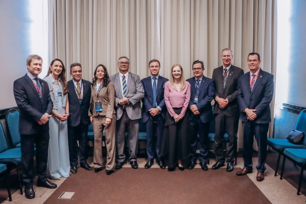 A Presidente da Audicon, Conselheira Substituta Milene Cunha, compôs a mesa da solenidade, reforçando a relevância da entidade no debate nacional sobre o aperfeiçoamento do controle externo.