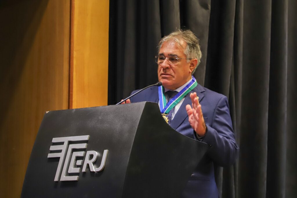 O Conselheiro Durval Ângelo, presidente do TCE-MG, iniciou sua fala ressaltando que o reconhecimento pertence tanto à pessoa quanto à instituição que representa. Citando Padre Antônio Vieira, refletiu sobre o valor das homenagens, afirmando que “a maior honra é de quem concede”, pois reconhecer o mérito alheio é um gesto de generosidade e fé no serviço público.