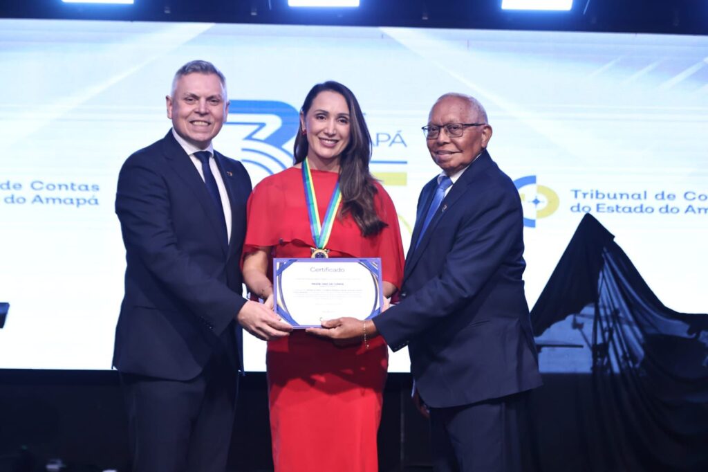 A entrega da medalha ocorreu por ocasião da celebração dos 35 anos do TCE-AP, marco que simboliza uma trajetória institucional pautada pela defesa da boa gestão dos recursos públicos, pelo fortalecimento da transparência e pelo compromisso com o interesse coletivo. A solenidade reuniu autoridades, representantes de instituições públicas, membros do Ministério Público de Contas, conselheiros, conselheiros substitutos, servidores e convidados.