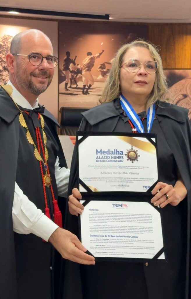 A Vice-Presidente de Prerrogativas e Assuntos Corporativos da Audicon, Conselheira Substituta Adriana Oliveira, do Tribunal de Contas dos Municípios do Pará (TCM-PA), recebeu, na tarde de ontem, 18 de setembro, a Medalha de Ordem de Mérito de Contas “Governador Alacid da Silva Nunes”, no Grau Comendador.A honraria é uma das mais altas distinções concedidas pelo TCM-PA e reconhece a contribuição de personalidades que se destacam na defesa do controle externo, na promoção da boa governança e no fortalecimento da gestão pública.A Medalha “Governador Alacid da Silva Nunes” simboliza o compromisso com a ética, a transparência e a responsabilidade no exercício das funções públicas, valores que a Conselheira Substituta Adriana Oliveira tem demonstrado de forma constante ao longo de sua trajetória.A Audicon parabeniza sua Vice-Presidente pela justa homenagem, que reafirma sua dedicação ao fortalecimento do controle externo e à valorização dos Tribunais de Contas em todo o país.
